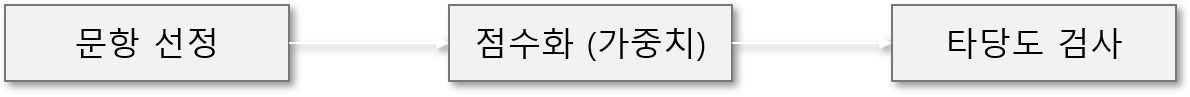 - 사회과학: 측정대상이 주로 비물질적 → 논리적/ 경험적으로 연관된 다수의 문항들로 구성