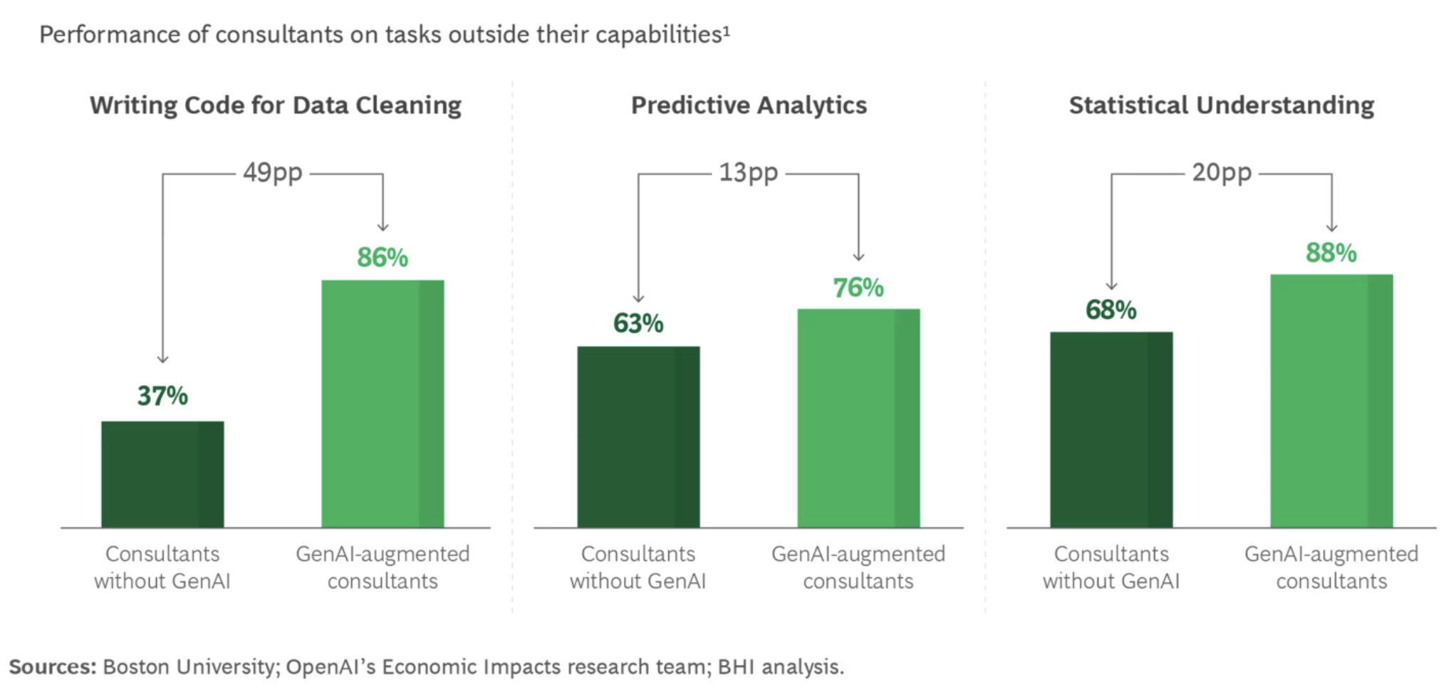- 실험 내용: 일반 직원들이 GenAI의 도움을 받아 통계 분석, 코딩, 예측 모델링 수행